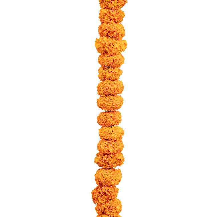 The Orange Marigold String Garland features vibrant marigold blossoms expertly strung to maintain their natural freshness and bright color. Known for their auspicious significance, these garlands are ideal for traditional ceremonies, festive decorations, and spiritual spaces. Crafted with precision, this garland offers durability and a refined aesthetic, making it a distinguished choice to elevate cultural and celebratory environments.