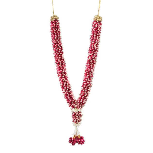 Rose Petals Garlands are elegantly crafted using fresh, vibrant rose petals, offering a soft texture and captivating fragrance. Perfect for enhancing religious ceremonies, weddings, and festive occasions, these garlands add a refined touch of beauty and grace. Their delicate composition symbolizes purity and devotion, making them a distinguished choice for traditional rituals and special celebrations.