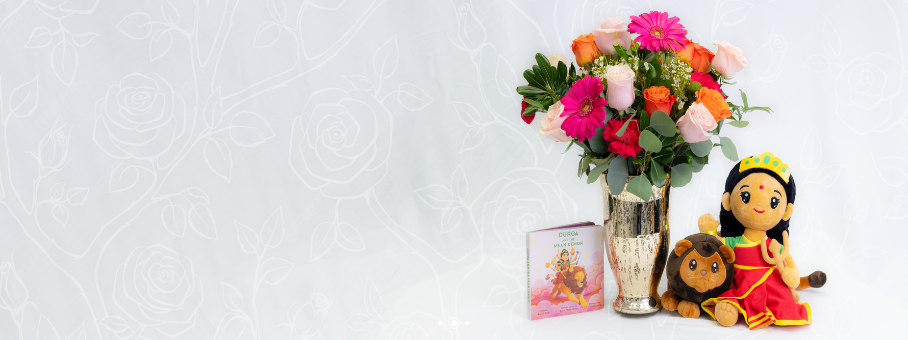 Regular price $150.00Regular priceUnit price / perCustomize your floral bouquet with a variety of blooms, colors, and arrangements, each complemented by the grace of a Mini Durga Modi Toy. Prices vary based on your preferences, ensuring a personalized and culturally rich gift.Â